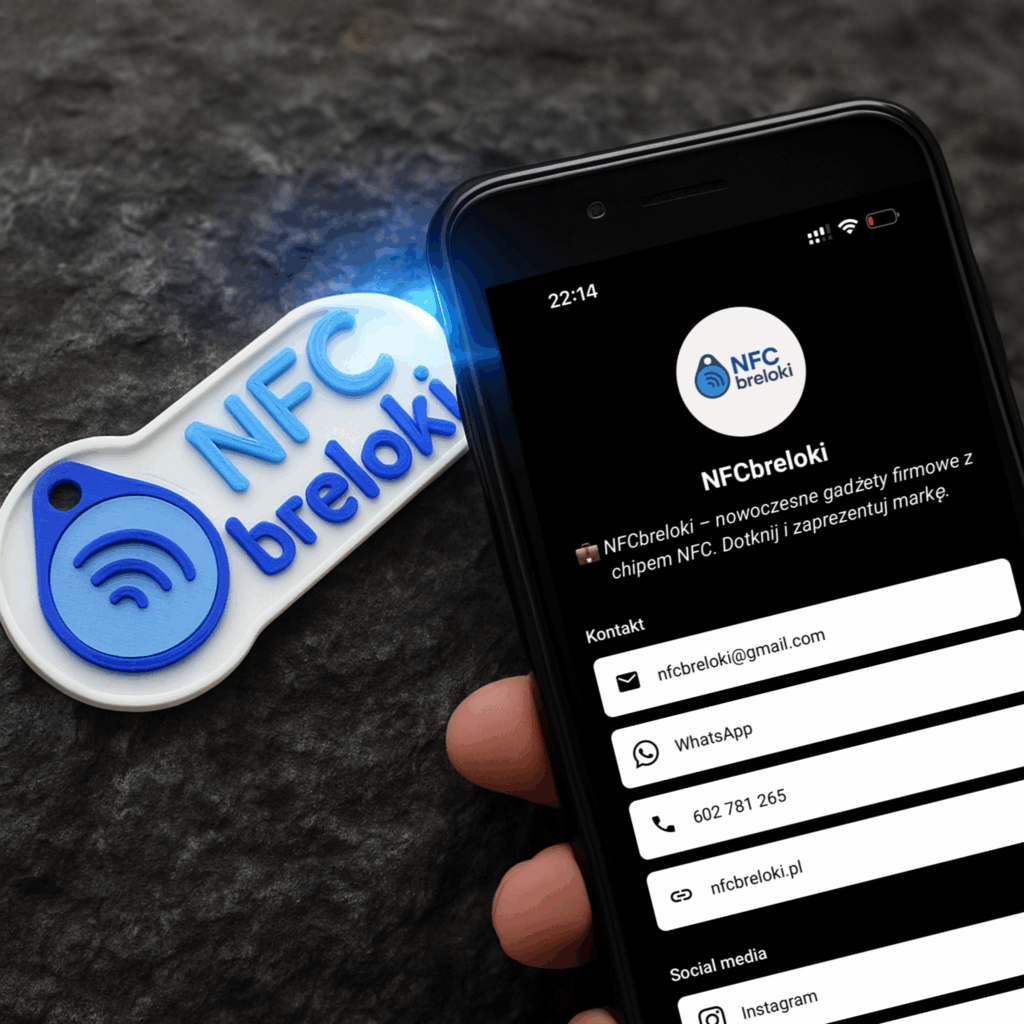 Projektujemy i produkujemy personalizowane breloki z chipem NFC, które po zbliżeniu do telefonu otwierają dowolny link – wizytówkę, stronę firmy, menu, zapis na kurs lub ofertę.